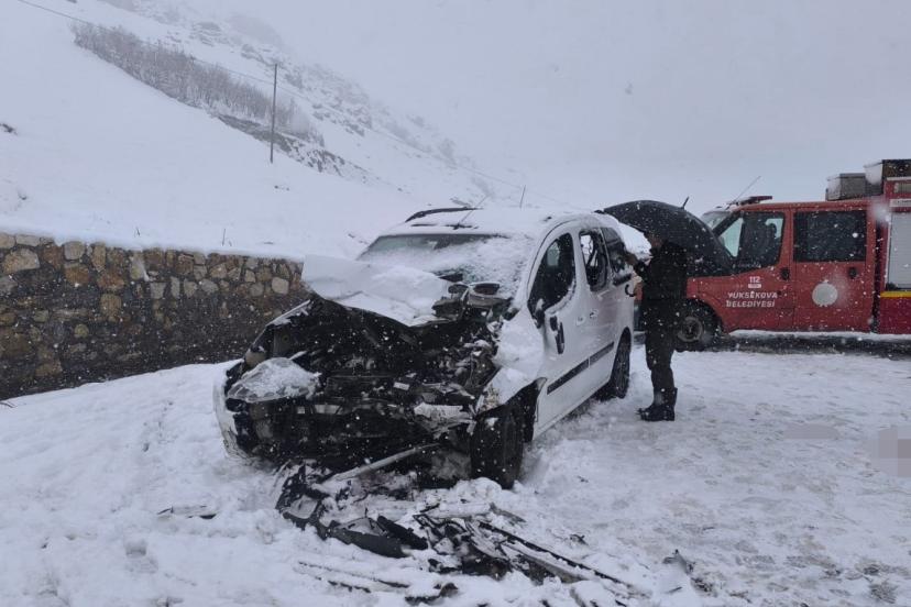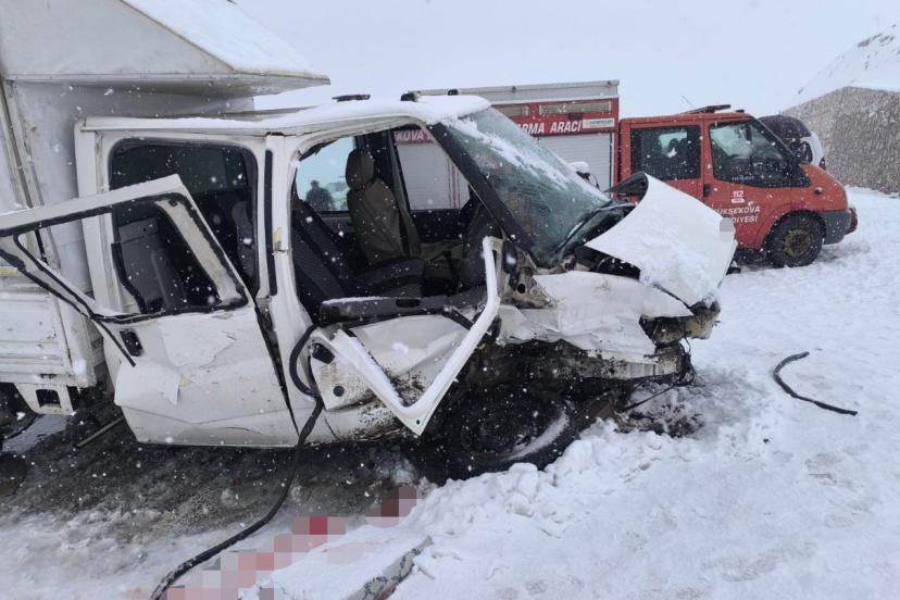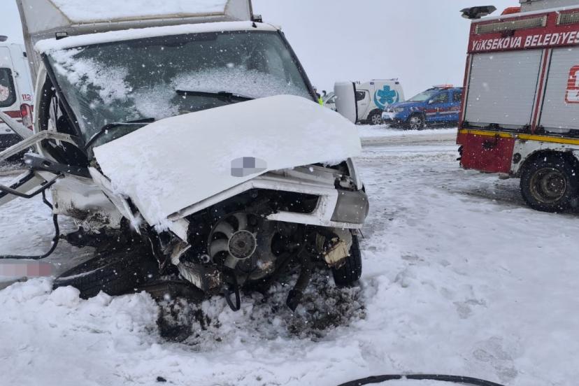 Hakkari’nin Yüksekova ilçesinde kar yağışının etkisiyle kayganlaşan yolda kamyonetlerin çarpışması sonucu yaralılardan biri hayatını kaybetti.