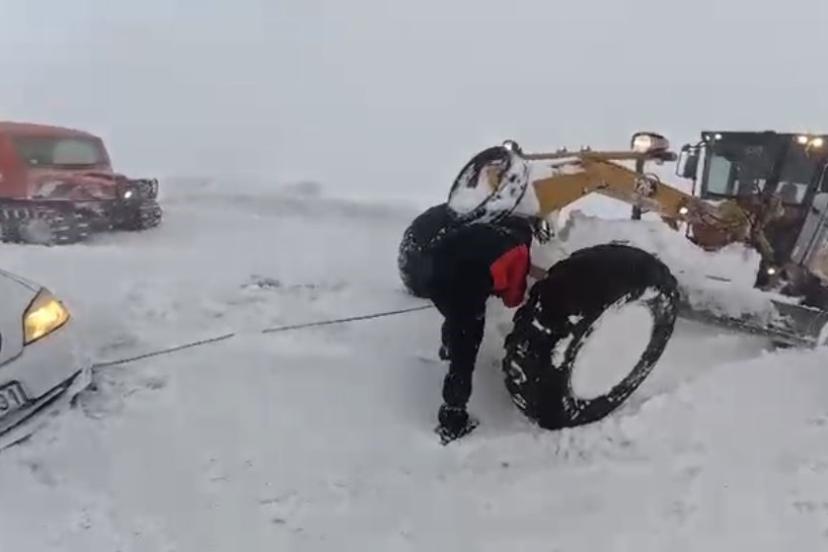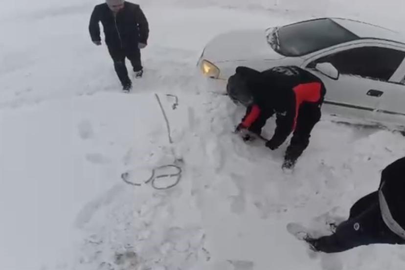 Yoğun kar yağışı ve tipi nedeniyle yolda mahsur kalan vatandaşlar, ekiplerin zamanında müdahalesiyle kurtarıldı.