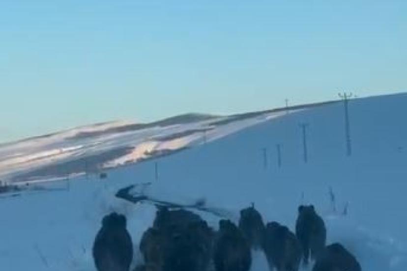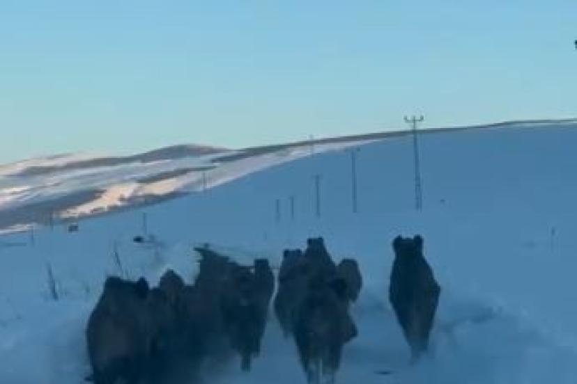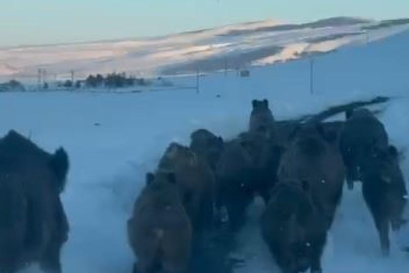 Merkeze bağlı Akyaka köyü yolunda sabah saatlerinde otomobiliyle seyreden Vedat Özgür’ün önüne aniden bir domuz sürüsü çıktı. Yol boyunca ilerleyen domuzlar bir süre aracın önünde koşarak ilerledi. Sürücü Özgür ise hayvanlara zarar vermemek için aracın hızını düşürerek ilerledi. Bir süre sonra yol kenarındaki karla kaplı alana yönelen domuzlar gözden kayboldu. Yaşanan ilginç anlar sürücünün cep telefonu kamerasıyla kayıt altına alındı.