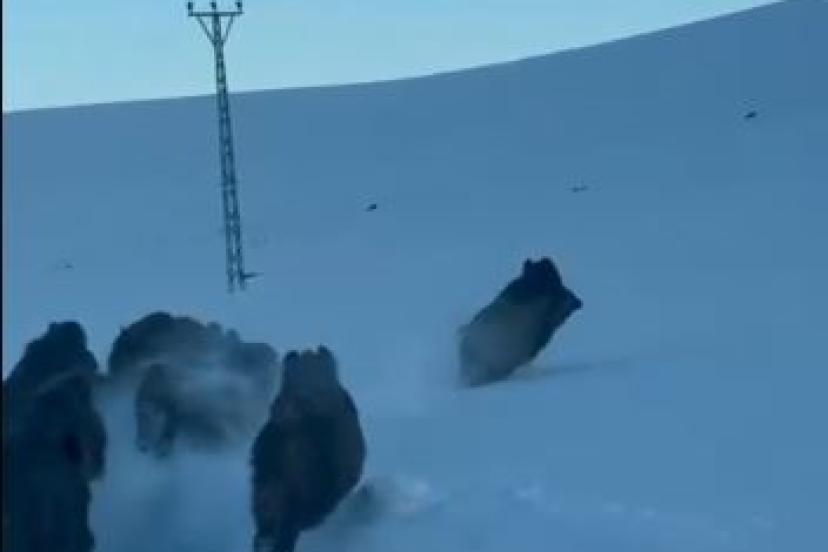 Ardahan’da karlı kaplı köy yolunda domuz sürüsü görüntülendi. Merkeze bağlı Akyaka köyü yolunda sabah saatlerinde otomobiliyl...