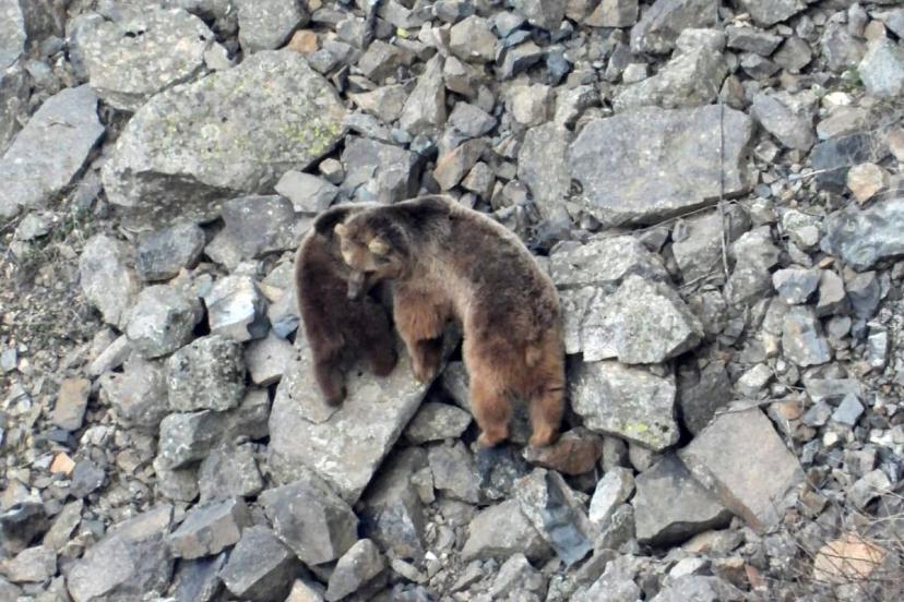 Erzurum’un İspir ilçesinde kış uykusundan uyanan ayı ailesi kameralara yansıdı.