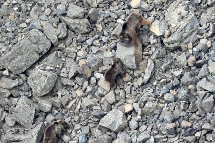Kış uykusundan uyanan ayı ailesi kameralara yansıdı