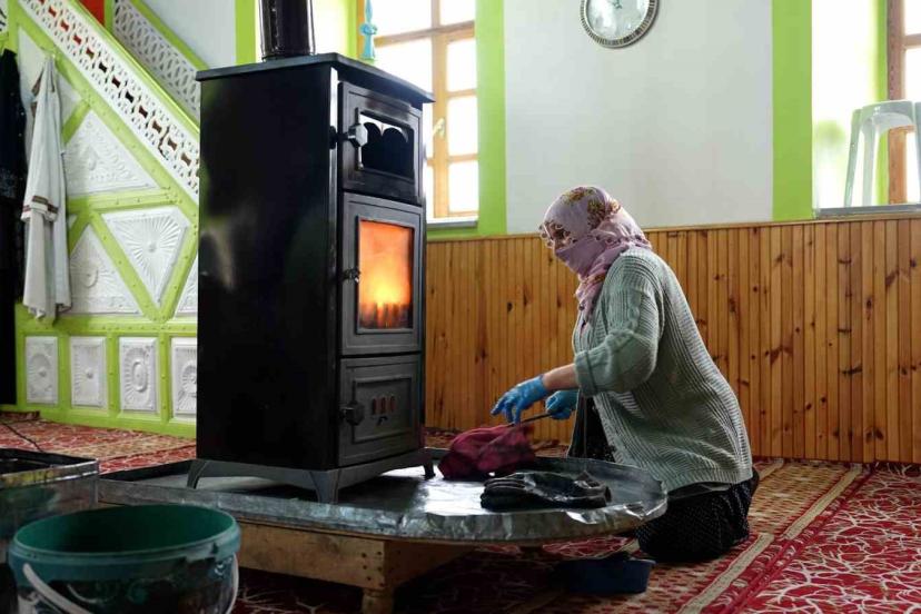 Erzincan’ın Sabırlı köyünde bulunan Sabırlı Köy Camii, Ramazan ayına girilmesiyle köylü kadınların imece usulü bir araya gelm...