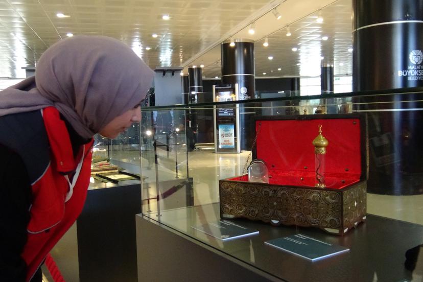 Peygamber Efendimiz Hazreti Muhammed'e (Sallallahu Aleyhi Vesselem) ait Sakal-ı Şerif başta olmak üzere 99 kıymetli emanetin yer aldığı 'Kutsal Emanetler ve Vakıf Eserleri Sergisi', Malatya'da vatandaşların yoğun ilgisiyle ziyaret ediliyor.