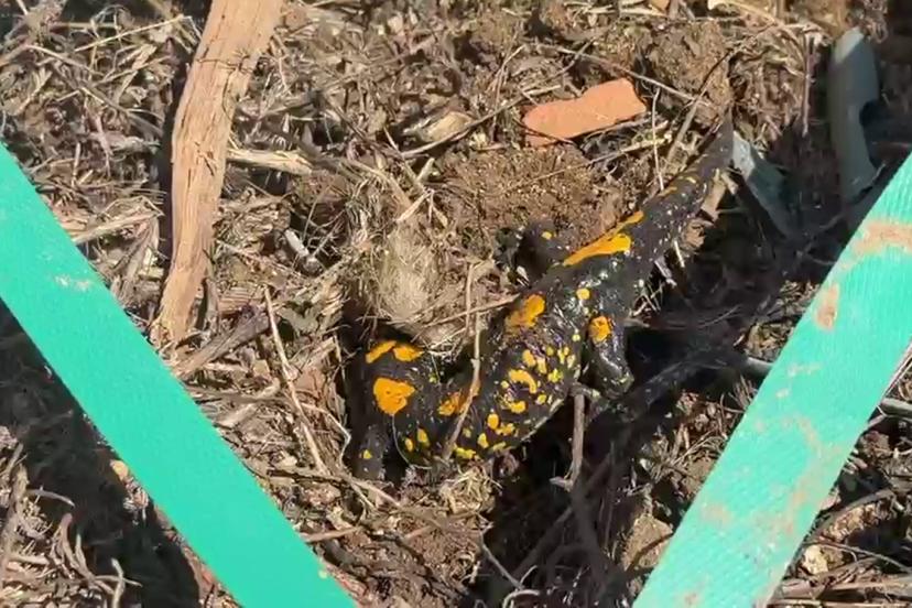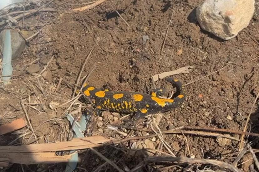 Malatya'nın Doğanşehir ilçesinde Avrupa'nın nemli ormanlık bölgelerinde yaşayan ateş semenderi, cep telefonu kamerasıyla görüntülendi.