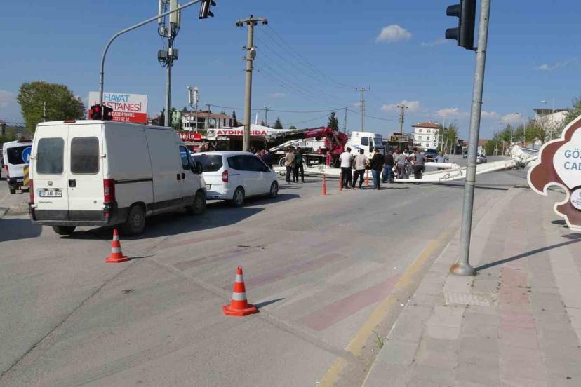 Malatya’da inşaat çalışması sırasında devrilen beton pompası yola düştü, seyir halindeki araçta maddi hasar meydana geldi.