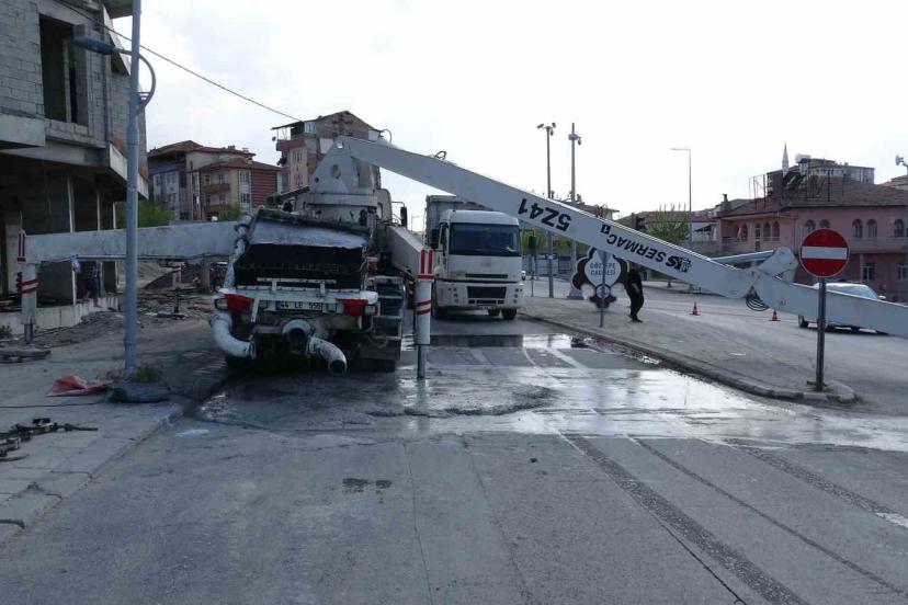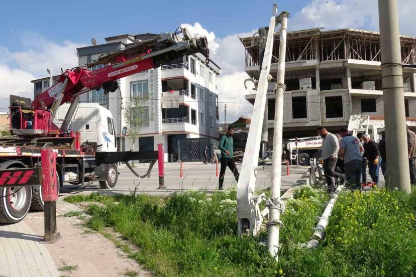 Malatya’da beton pompası devrildi, faciadan dönüldü