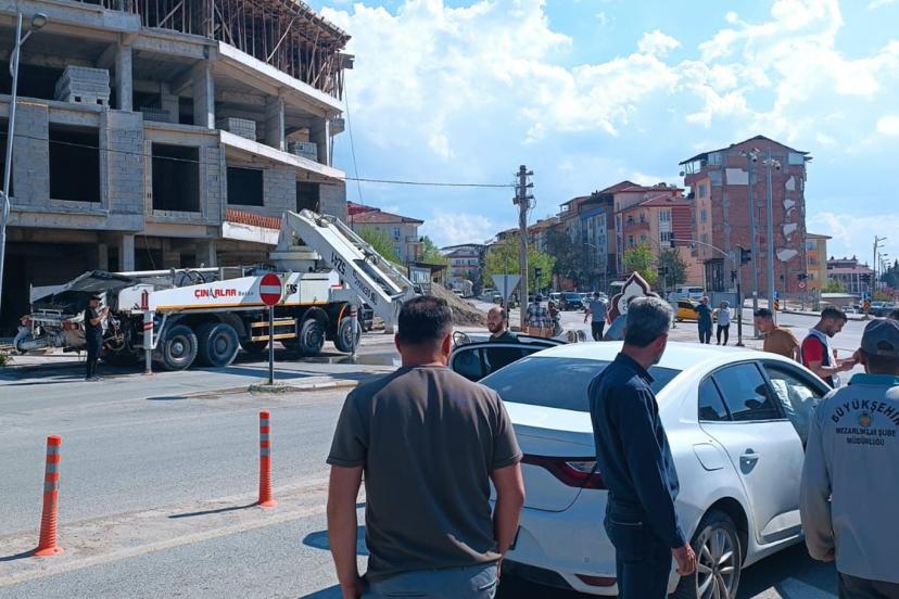Edinilen bilgiye göre, yaklaşık 50 metre uzunluğundaki beton pompası döküm sırasında henüz bilinmeyen bir nedenle kontrolden çıkarak caddeye devrildi.