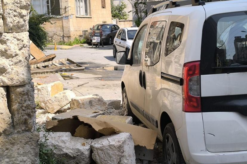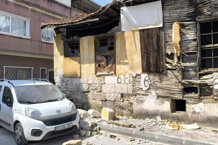 Mersin'in Akdeniz ilçesinde metruk bir binanın park halindeki aracın üzerine yıkılması sonucu maddi hasar oluştu.