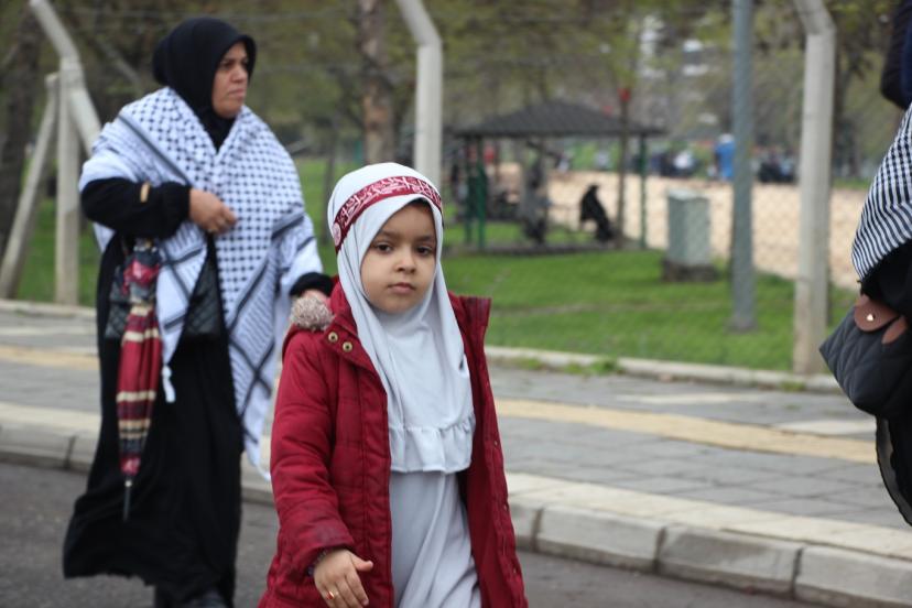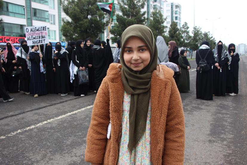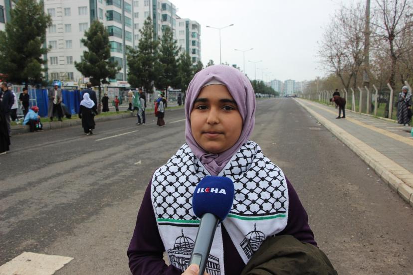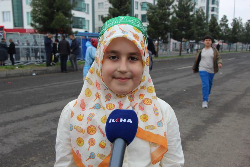 Tekbir ve salavat getirdiklerini söyleyen Feyzanur Demir, "Peygamber Efendimiz Aleyhisselamı çok seviyoruz, O'nun için geldik. Bugün buraya tekbir ve salavatlar getirdik. Efendimiz Aleyhisselam, çocukları çok seviyordu, bizler de O'nu çok seviyoruz." şeklinde ifade etti.