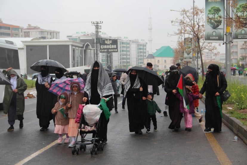 Bağlar ilçesindeki Nevruz Park Alanı'nda gerçekleşen etkinlikte, sağanak yağışa rağmen alanı dolduran çocuklar, Peygamber sevgisini dile getirirken, "Peygamber sevgisi zorlukları göze almaktır" sözleriyle etkinliğin ruhunu yansıttı.