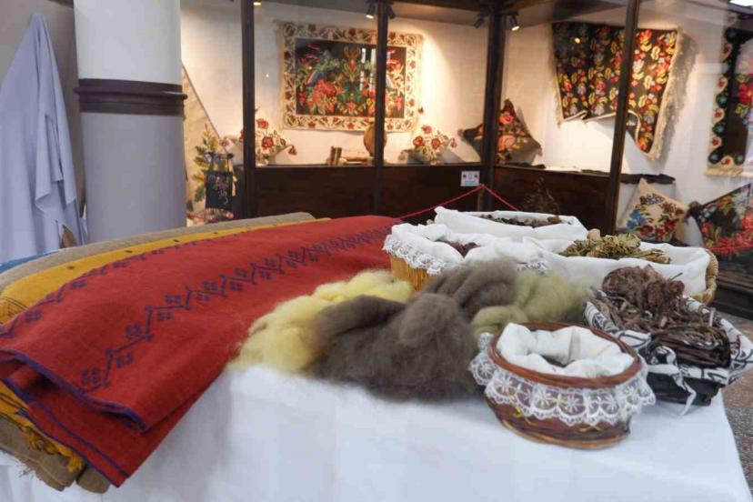 Erzurum’daki bir çok atölyede koyun yününden elde edilen ipliklerin dokunmasıyla elde edilen ehram kumaşıyla giyimden süs eşy...