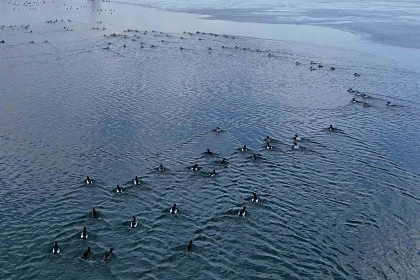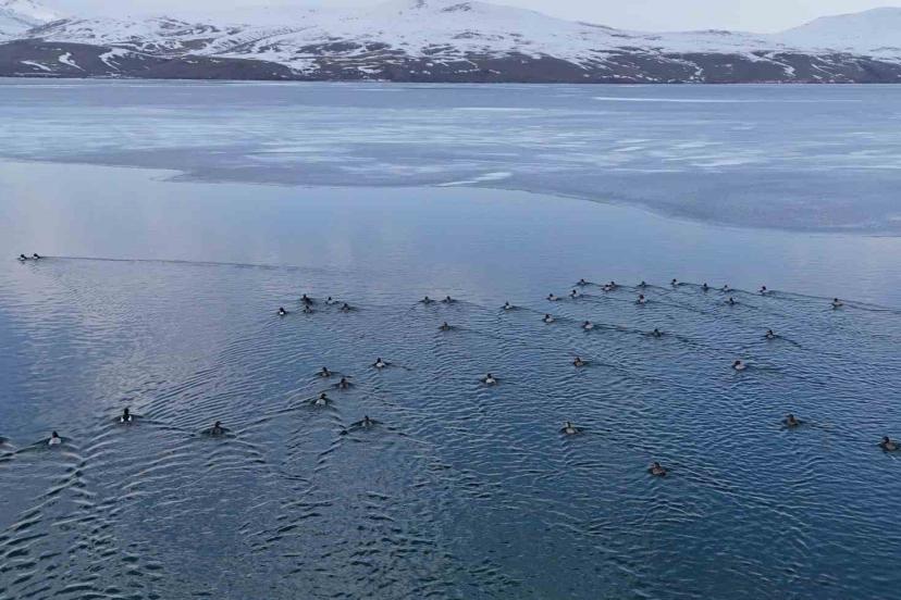 Günlerce beyaz örtüyle kaplı kalan gölde, su yüzeyinin yeniden ortaya çıkmasıyla birlikte doğa adeta canlandı. Buzların arasından süzülen Tepeli Patka ve Elmabaş Patka ördekleri, göl yüzeyinde sergiledikleri ahenkli hareketlerle izleyenleri hayran bıraktı. Ördeklerin kanat çırpışları ve su üzerindeki zarif süzülüşleri güzel görüntüler oluştururken, ortaya çıkan manzara, doğaseverlerin ilgisini çekti.