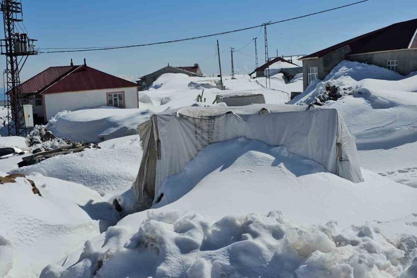 Bitlis’in Adilcevaz ilçesi Süphan Dağı eteğindeki Kışkılı Mahallesi, nisanda yer yer 3 metreyi bulan karla baharı bekliyor.
