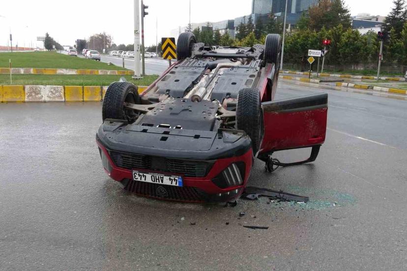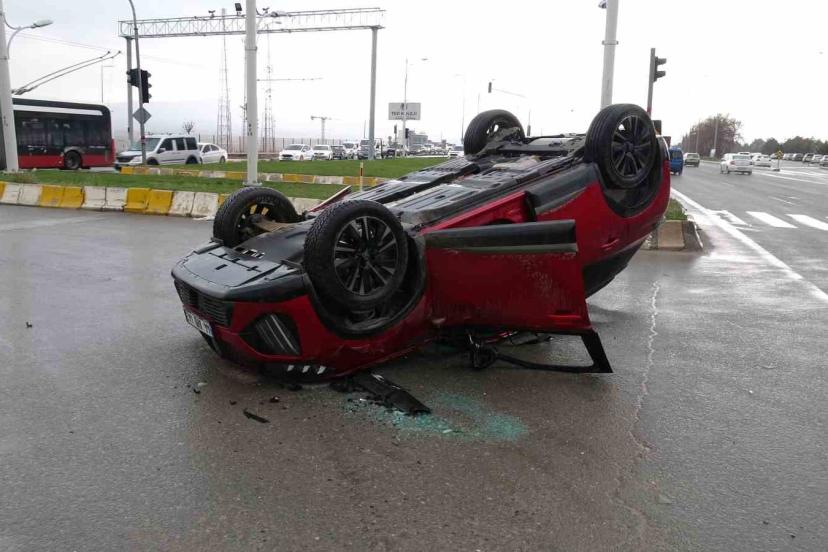 Otomobil ile çarpışan araç ters döndü: 2 yaralı