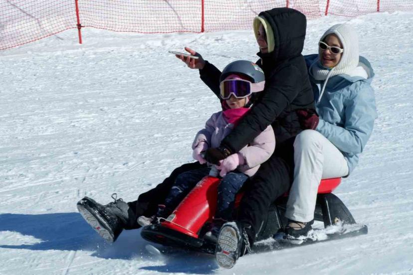 Palandöken’de kayak keyfi sürüyor