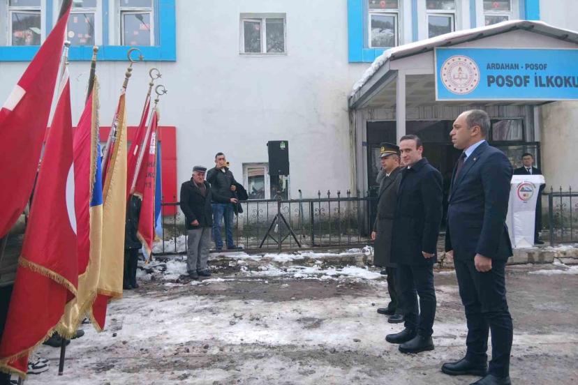 Atatürk anıtına kaymakamlık, Garnizon komutanlığı ve Belediye başkanlığı çelenklerinin konulmasından sonra Posof şehitliğine yürüyüş yapıldı. Saygı duruşu ve istiklal marşının okunmasından sonra Kuran okundu ve dualar edildi.