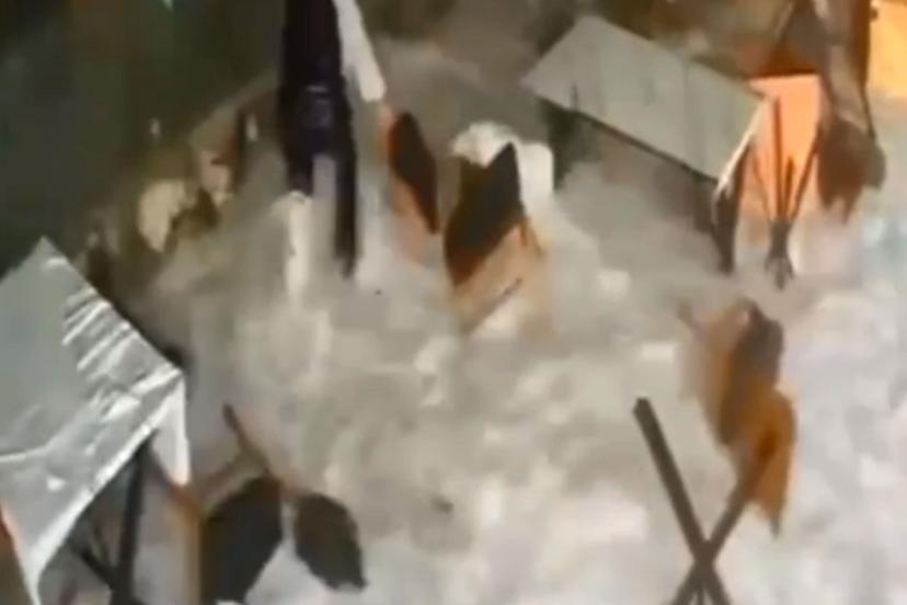 Restorana vuran dev dalganın çalışanı sürüklendiği anlar kamerada