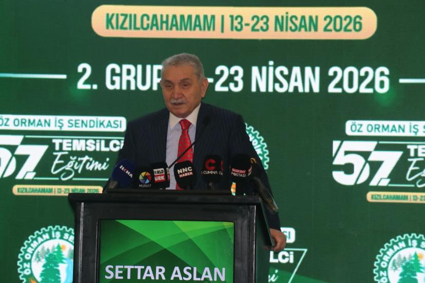 Öz Orman-İş Sendikası'nın Ankara Kızılcahamam'da düzenlediği 57. Temsilci Eğitimi Toplantısı'nda konuşan Öz Orman-İş Sendikası Genel Başkan Settar Aslan, orman işçilerinin yangınlarla mücadelede büyük fedakarlık gösterdiğini söyledi.