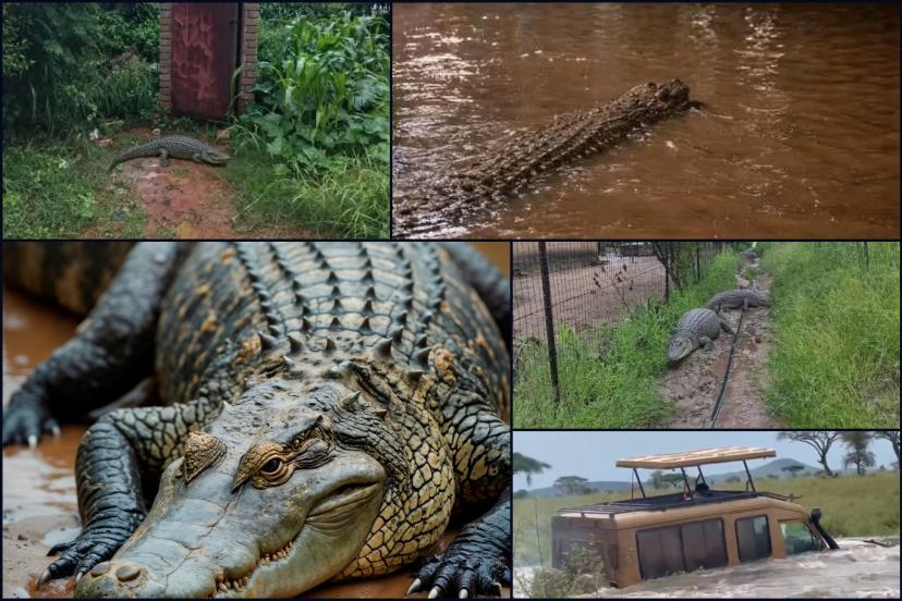 Sosyal medyada paylaşılan görüntülerde ise sel sularının içinde bir timsahın sokakta sürüklendiği görülürken, başka bir videoda bir timsahın kasaba içinde bir yolu hızla geçtiği dikkat çekti.