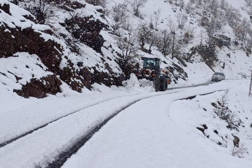 Şırnak'ta etkili olan kar yağışı sonrası Beytüşşebap ilçesinde kapanan grup köy yollarının açılması için çalışmalar devam ediyor.