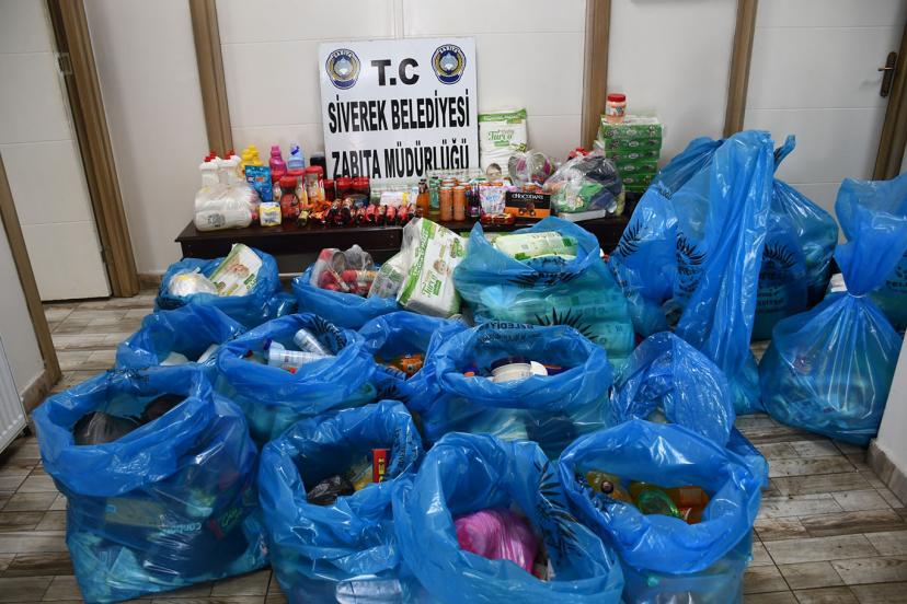 Yapılan kontrollerde, son kullanma tarihi geçmiş yiyecek, içecek, temizlik ürünleri ile çeşitli malzemeler tespit edilerek el konuldu.