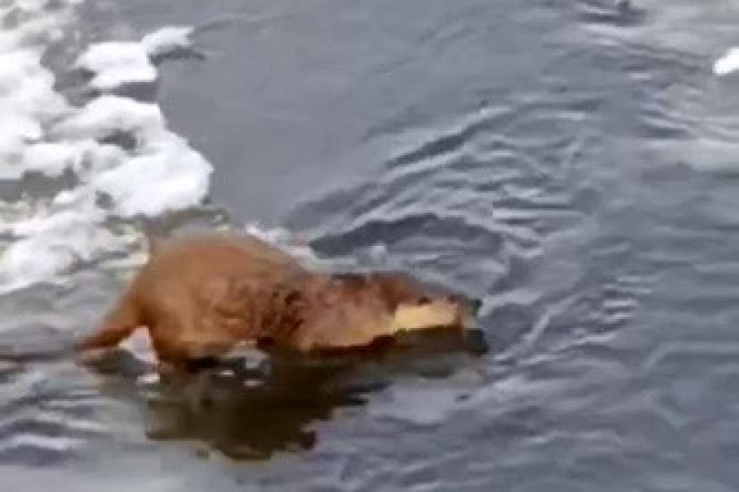 Su samuru, buz üstünde balık yerken görüntülendi