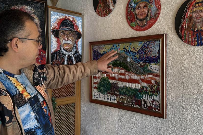 Tarihi semtte çay posasından portakal filesine, her şeyi esere dönüştürüyor