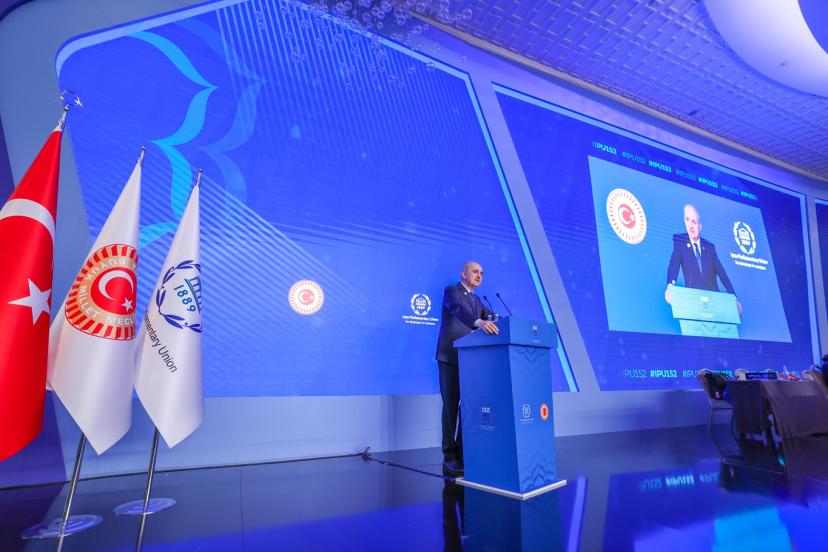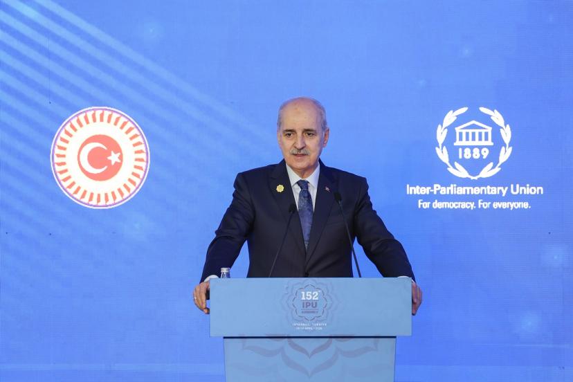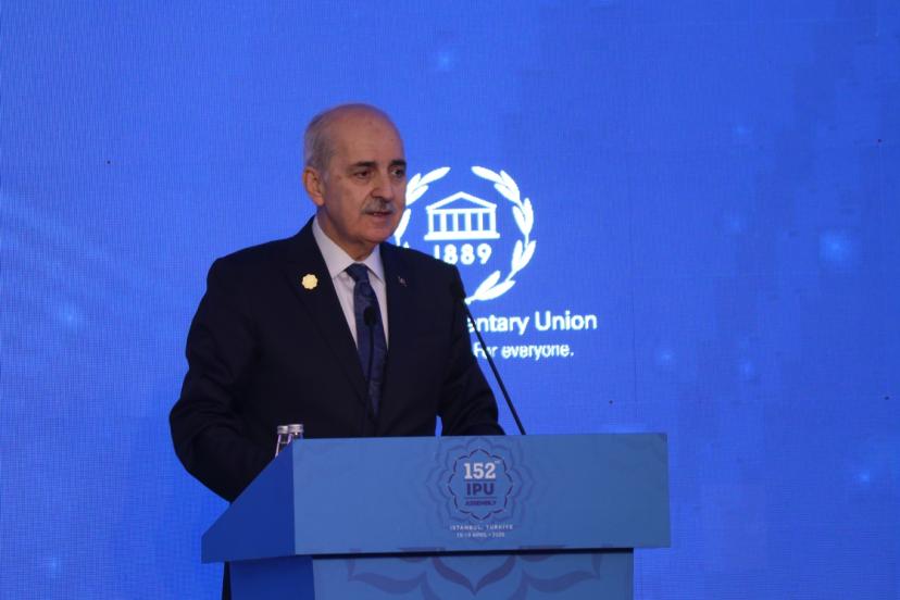 Parlamentolar Arası Birlik 152. Genel Kurulu'nun "Kadın Parlamenterler Forumu"nda konuşan TBMM Başkanı Numan Kurtulmuş, "Başta Gazze olmak üzere bölgemizde devam eden çatışmalarda yaşanan, artık soykırım boyutlarına varmış olan insanlık suçlarının en ağır faturasını maalesef Gazzeli kadınlar ve çocuklar ödemektedir." dedi.
