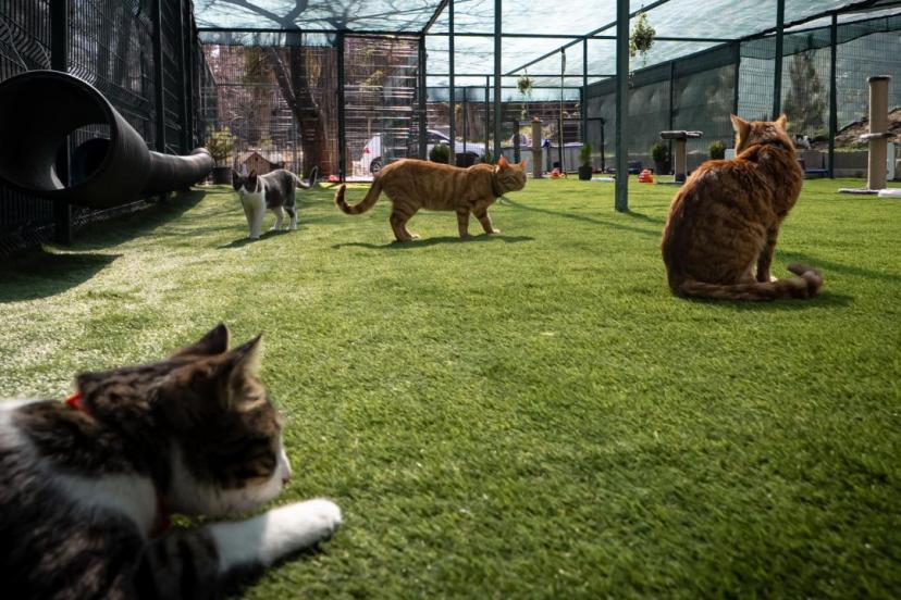 Yaşam alanındaki kedi evleri, ısı yalıtımlı ve zorlu hava koşullarına dayanıklı şekilde tasarlandı.