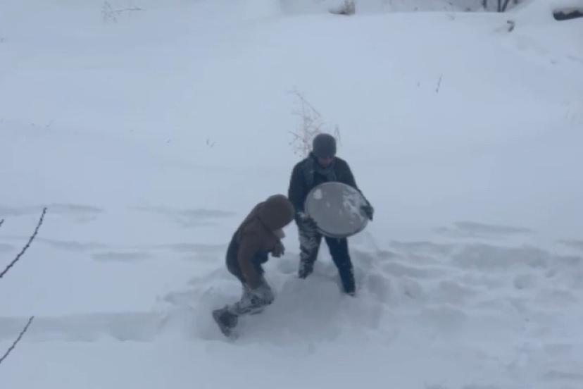 Tepsiyle kayarak karın tadını çıkaran çocukların neşesi, büyük kardeşin kaydıktan sonra tepsiyi havaya fırlatmasıyla son buldu. Kontrolden çıkan tepsi, yanında bulunan küçük kardeşinin başına çarptı. Başına darbe alan çocuk acıyla bir süre hüngür hüngür ağladı.