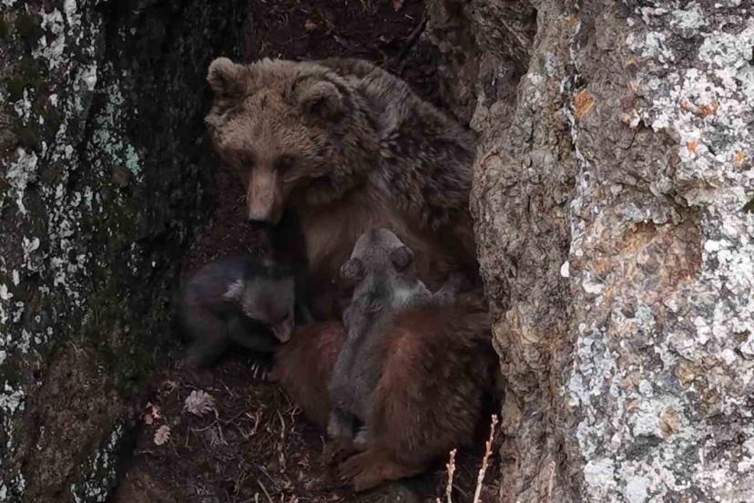 Tunceli’de kaydedilen görüntüler, yaban hayatının en özel anlarından birini gözler önüne serdi. Dağlık alanda görüntülenen bir ayılar ve yavruları, izleyenlere adeta belgesel sahnelerini aratmayan anlar yaşattı. Görüntülerde bir anne ayının yavrularını emzirdiği anlar net bir şekilde kaydedildi. Bir süre sonra hareketlenen yavruların kayalık alana doğru ilerlediği, annenin ise onları dikkatle yönlendirdiği görüldü. Zorlu arazi şartlarında ilerlemekte zorlanan yavrularına yardım eden anne ayı, zaman zaman geri dönerek onların güvenli şekilde tırmanmasını sağladı.