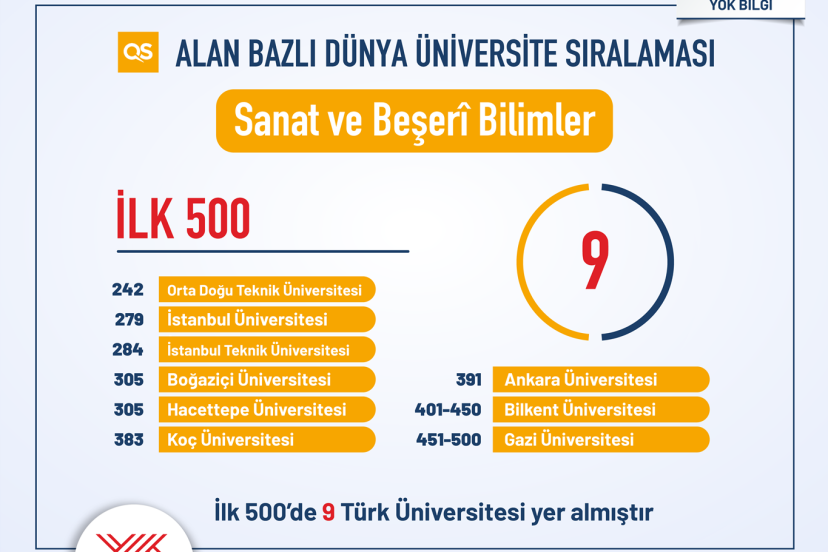 QS alan bazlı dünya üniversite sıralamasında, “Sanat ve Beşerî Bilimler” alanında ilk 500’de 9 Türkiye üniversitesi sıralamaya girdi.