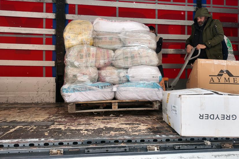 Suriye’deki ihtiyaç sahiplerinin mağduriyetini gidermek amacıyla başlatılan insani yardım seferberliği kapsamında; gıda, giyim, ayakkabı, bebek bezi ve bebek maması gibi temel ihtiyaç malzemeleri gönüllülerin yoğun mesaisiyle tıra yüklendi.