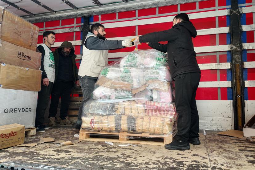 Yardım tırının uğurlanması sırasında Umut Kervanı yetkililerine eşlik eden HÜDA PAR İl Teşkilatı üyeleri, yürütülen bu anlamlı çalışmaya bizzat katkı sundu.