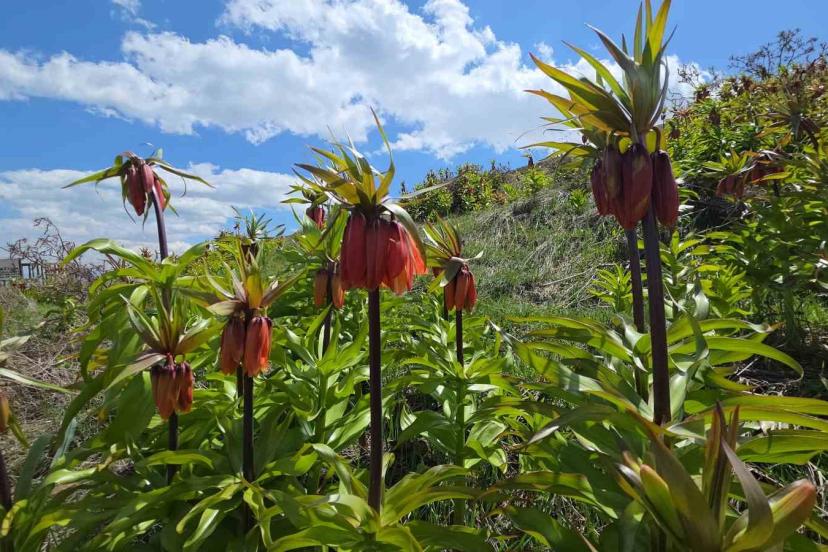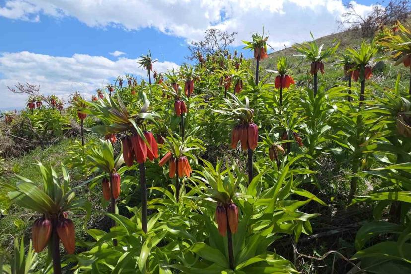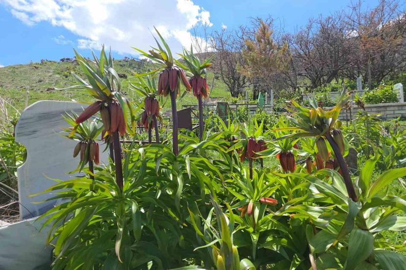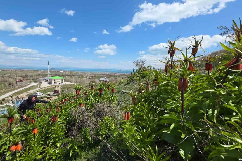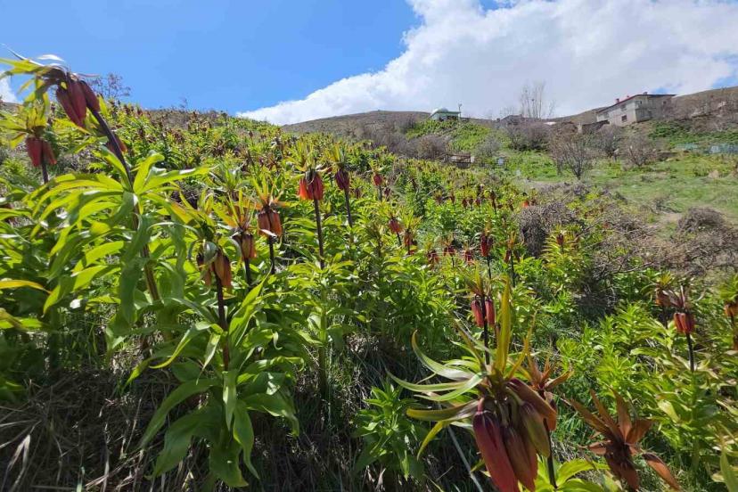 Van’ın Gevaş ilçesindeki yetişen ve halk arasında "ağlayan gelin" veya "hüzün çiçeği" diye bilinen ters laleler güzellikleriyle doğayı renklendiriyor.