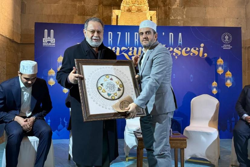 Erzurum’da Ramazan Neşesi etkinlikleri kapsamında düzenlenen "Vahyin Sesi-Kur’an Ziyafeti" programı, Yakutiye Medresesi’nde vatandaşların yoğun katılımıyla gerçekleştirildi.