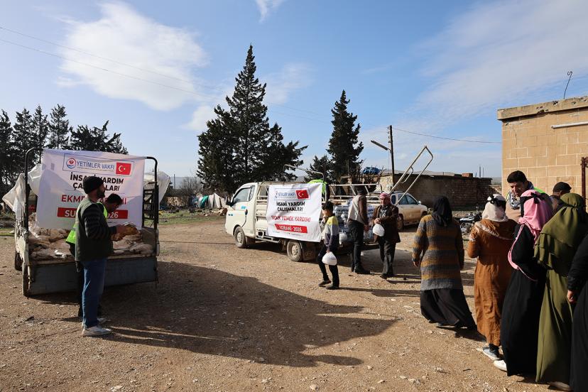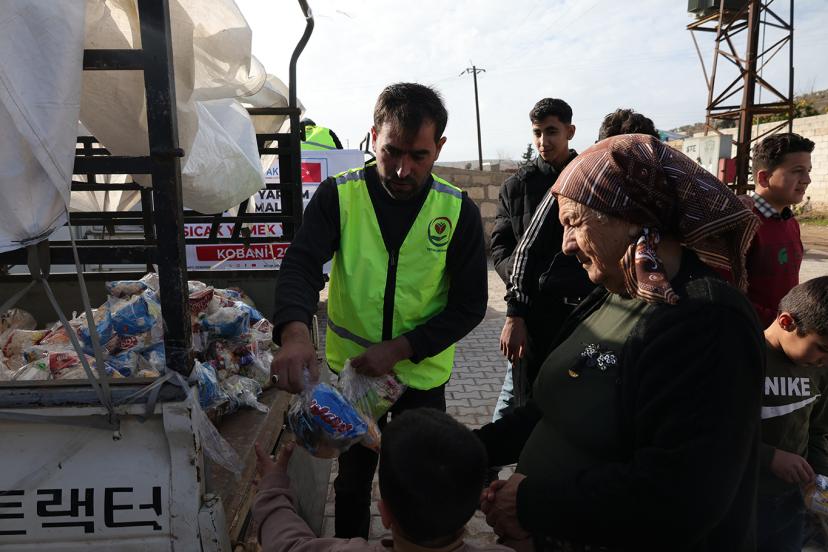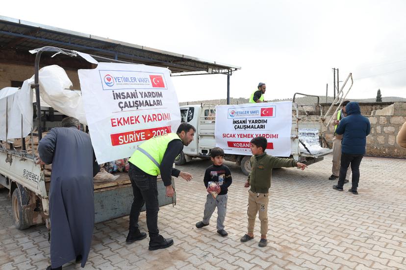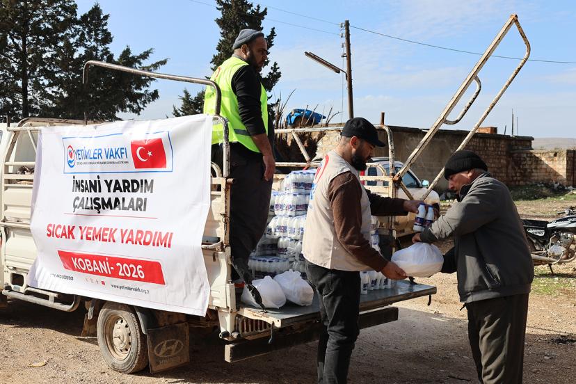 Suriye’nin Kobani bölgesinde insani yardım çalışmalarını sürdüren Yetimler Vakfı, savaşın etkilerini derinden yaşayan sivillere sıcak yemek, ekmek, süt ve çocuklara yönelik ikramlıklar dağıttı.