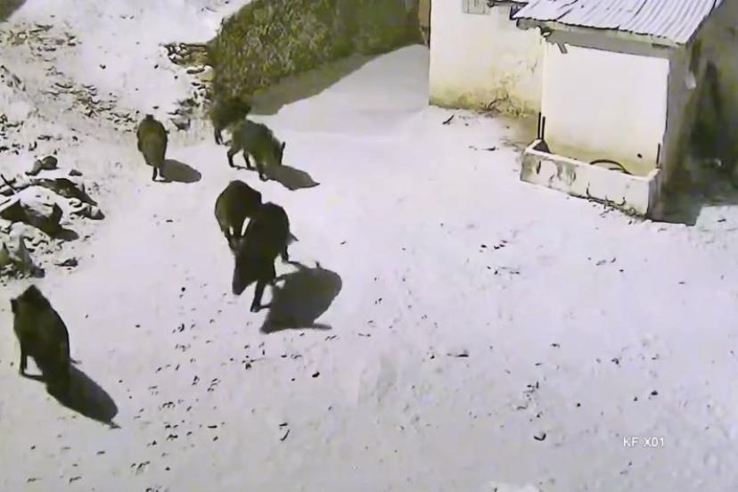 Elazığ’da kar yağışı sonrası doğada yiyecek bulmakta güçlük çeken domuzlar, Baskil ilçesi Hacıhüseyinler köyüne indi. Köyün içerisinde bulunan güvenlik kamerasına yansıyan domuz sürüsü bir süre sonra gözden kayboldu. O anlar güvenlik kamerası tarafından saniye saniye kaydedildi.