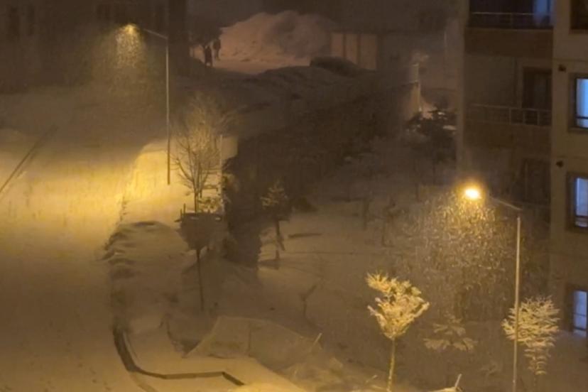 Hakkari’nin Yüksekova ilçesinde akşam saatlerinde etkili olan yoğun kar yağışıyla birlikte ilçe beyaza büründü.