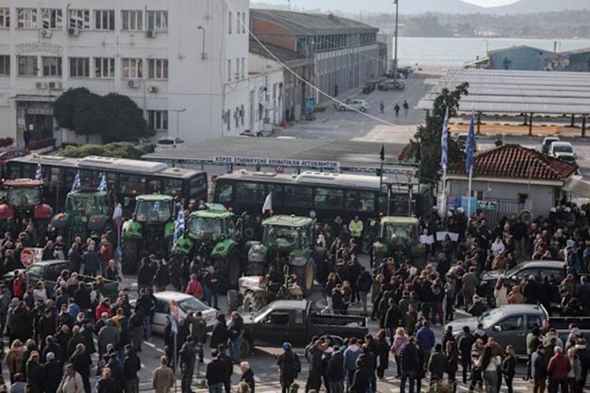 Yunanistan'ın Midilli Adası'nda çiftçilerin düzenlediği protesto sırasında liman girişini kapatıldı.